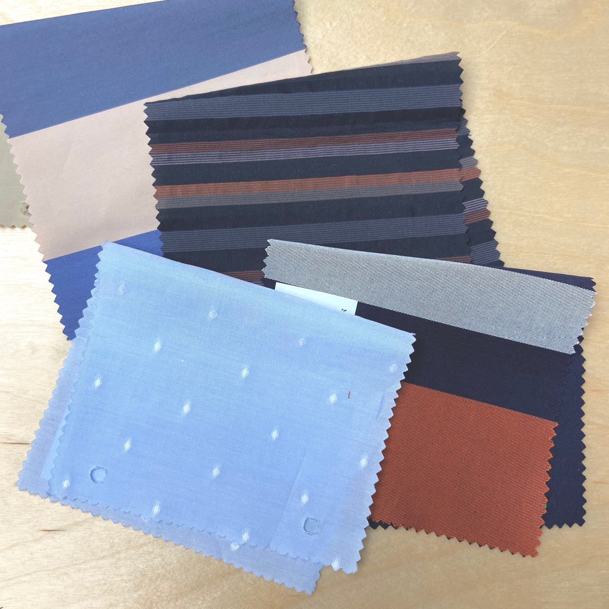 Vi udvælger nøje metervarer af høj kvalitet fra overskudsproduktioner til vores designs, som alt sammen er vævet i Portugal. I stedet for at producere nye metervarer, benytter vi os af, kvaliteter der allerede eksisterer.